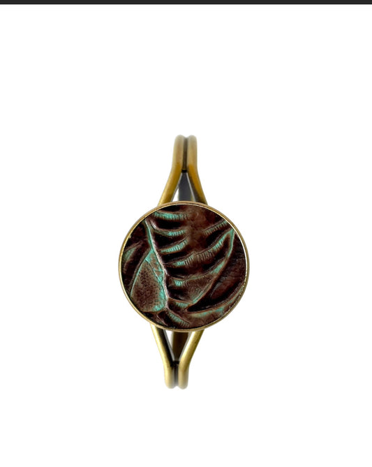 J6868 - 3/4 Bangle w Tooled Leather Bezel vary slightly Tarnished.. see pic