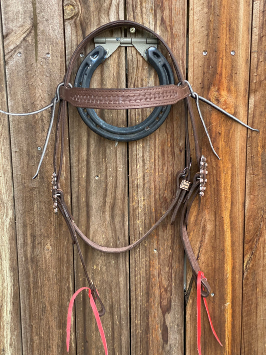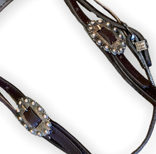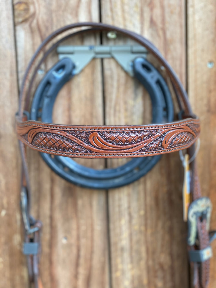 N322 - Floral Tool and Hide - Argentina Cow Leather Browband Headstall