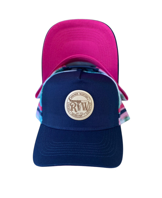 KP4233 - KIDS Rawhide Leather Patch Pink Country Trucker Cap
