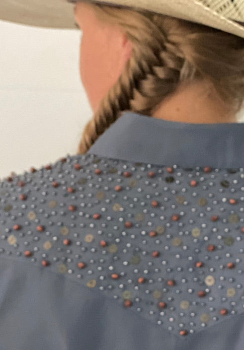 L1378 - Zillah Western Shirt Ladies Plain Grey Shirt with beading