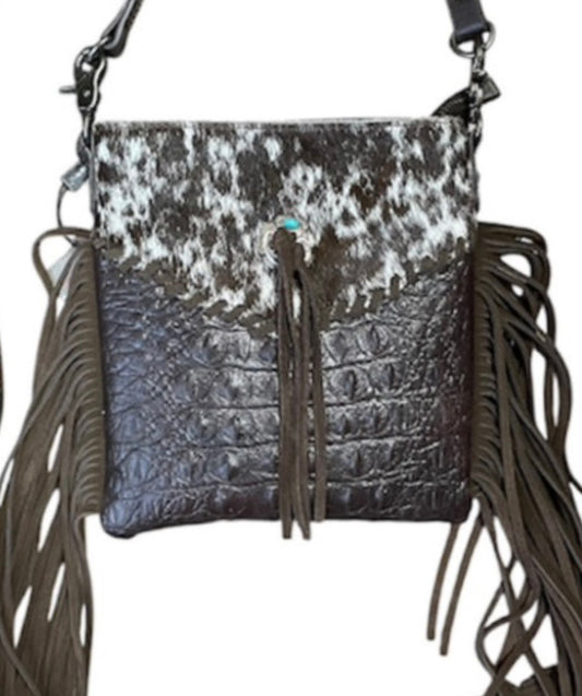 R162G2001BR - Trinity Ranch Hair-On Cowhide Fringe Concealed Carry Crossbody Bag
