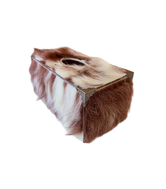 A8842 - Wooden Tissue Holder w Cowhide & Kangaroo Leather