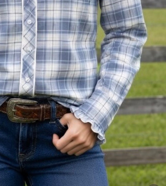 L1482 - Silver Spur Grey Check Ladies Rawhide Western Shirt | Fitted Arena Shirt
