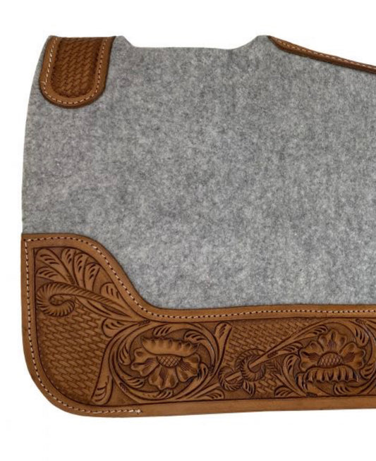 PAD279 - 30" x 32" Contoured Felt Saddle Pad with Tooled Top Grain Wear Leathers