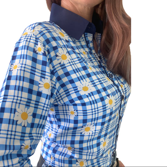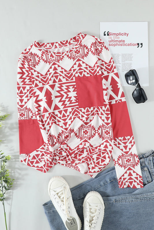 L1417 - Aztec Print Splicing Pocket Long Sleeve Top