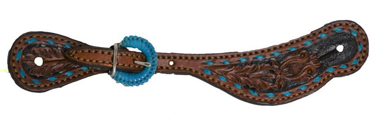 9092 - Painted Floral Tooled Spur Straps with Crystal Conchos