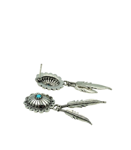 J7078 - Concho Style Turquoise Stud Dangle Earrings
