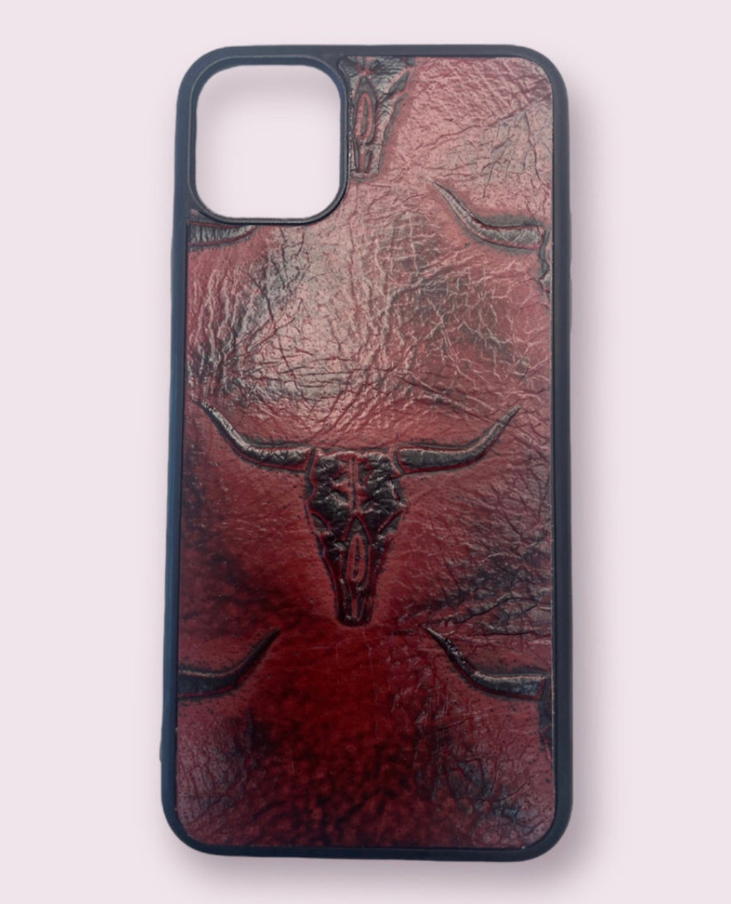 Snap-on Rimmed phone case is Quality Rubber with genuine leather Raised Bull.