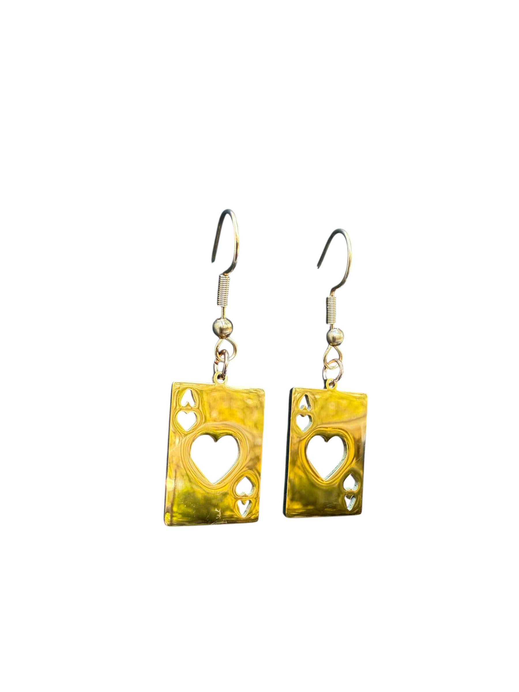 J6487B - Highly reflective Gold Colour Ace Dangle Earrings